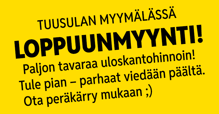Noutovarasto suljettu sunnuntaisin.