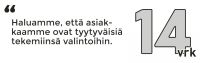 Haluamme, että asiakkaamme ovat tyytyväisiä tekemiinsä ratkaisuihin. Siksi tarjoamme aina tuotteillemme 14 vuorokauden vaihto- ja palautusoikeuden.