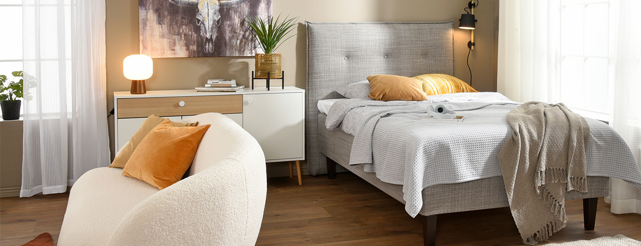 Sänkyostosten jälkeen on aika kääntää katseet makuuhuoneen kokonaiskuvaan. Kuinka paljon tilaa huoneessa on? Mitä vaatimuksia makuuhuoneen sisustuksen pitää lunastaa? Millainen on juuri sinun unelmiesi makuuhuone? Lue vinkit ja sisusta unelmiesi makuuhuone oman budjettisi mukaan.