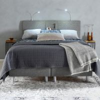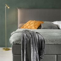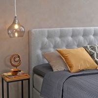Hyggeilijä valitsee pehmeän, kankaisen sängynpäädyn, johon on mukava nojata kirjaa lukiessa. Kankaissa hän suosii puuvillasekoitteita, pellavaa ja juuri nyt niin trendikästä samettia. Samettisen sängynpäädyn sijaan ajan henkeä voi loihtia huoneeseen myös samettisilla sisustustyynyillä tai aamutakilla.