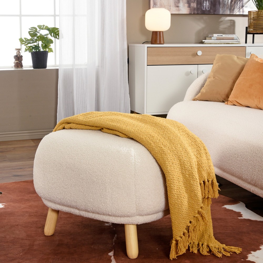 Vinkki: Herätä olohuoneen sisustus eloon pienillä yksityiskohdilla. Boho-tyylinen koristetyyny, matto tai sisustustaulu tekee jo ihmeitä!