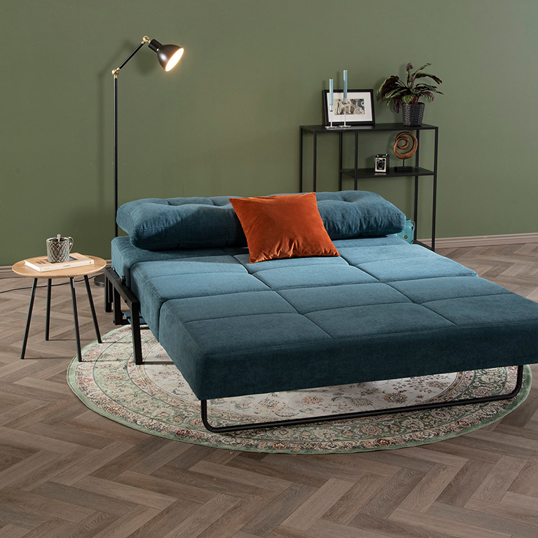 Pieneen vuodesohvaan mahtuu nukkumaan ruhtinaallisesti yksin, tiiviimmin kaksin.