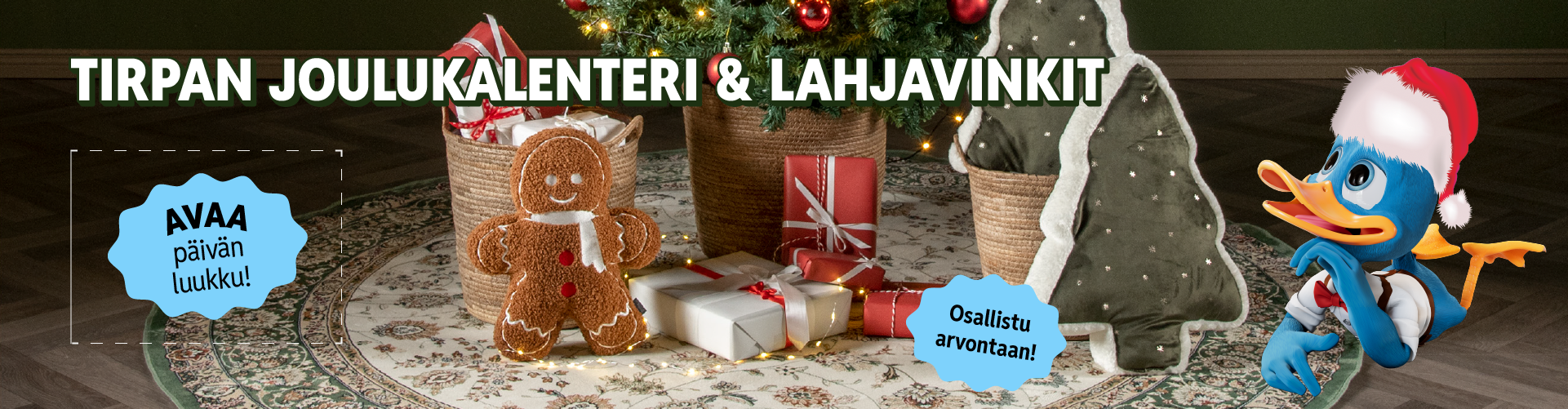 Joulun aika on täällä – mutta edut eivät odota! Sukella Sotkan joululahjavinkkeihin ja anna Tirpan joulukalenterin yllättää sinut joka päivä uudella, vain päivän voimassa olevalla edulla tai joulunajan huipputarjouksella. Avaa luukut 1.–24.12. ja nappaa lahjat ennen kuin ne vilahtavat ohi!