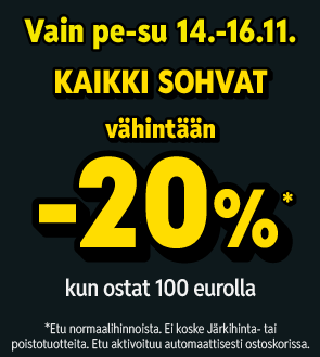 Sotkan Tarjoukset-sivulta löydät kaikki ajankohtaiset tuotteet ja tarjoukset aina parhaaseen hintaan. On kyseessä sitten tarjous sohva tai olohuoneeseen tarjous matto, löydät ne helposti Sotkan verkkosivuilta. Hyödynnä myös kuukauden kampanjaedut ja sesonkien, kuten terassikalusteiden tarjoukset. Kun on aika hankkia uusi sänky, kaikki sänkytarjouksemme löytyvät täältä!