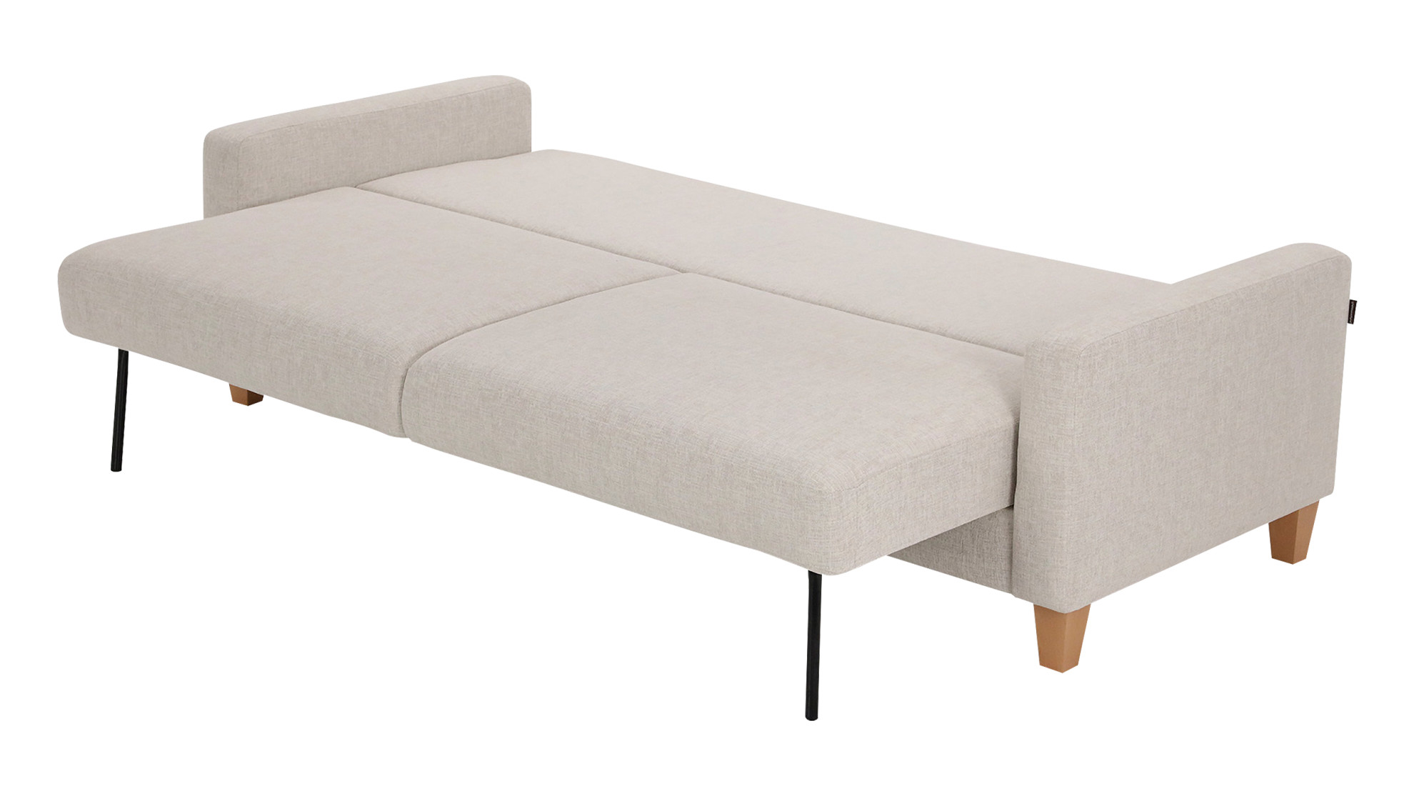 Selkäosaa kääntämällä saat pitkittäin nukuttavan vuoteen, vuodeleveys 140 cm ja -pituus 188 cm. Kätevän mekanismin ansiosta vuoteen voi levittää ahtaisiinkin tiloihin. Sohvasta löytyy myös säilytystila vuodevaatteille.