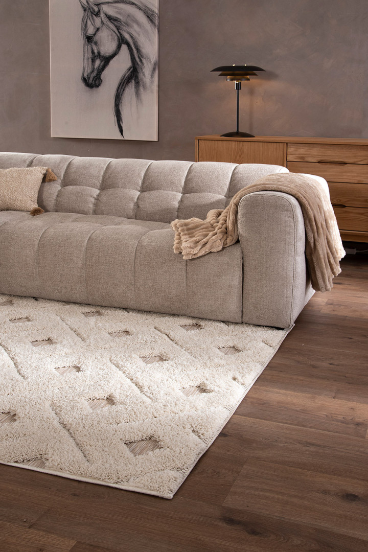 Valkoinen-harmaa Janette-nukkamatto on tyylikäs katseenvangitsija kodissasi. Kohokuvioinen nukkamatto tuo kotiisi uudenlaisen ilmeen. Pehmeä valkoinen nukkalanka harmaalla sileällä pohjalla on ilmeikäs ja luo sisustukseen pehmeyttä.