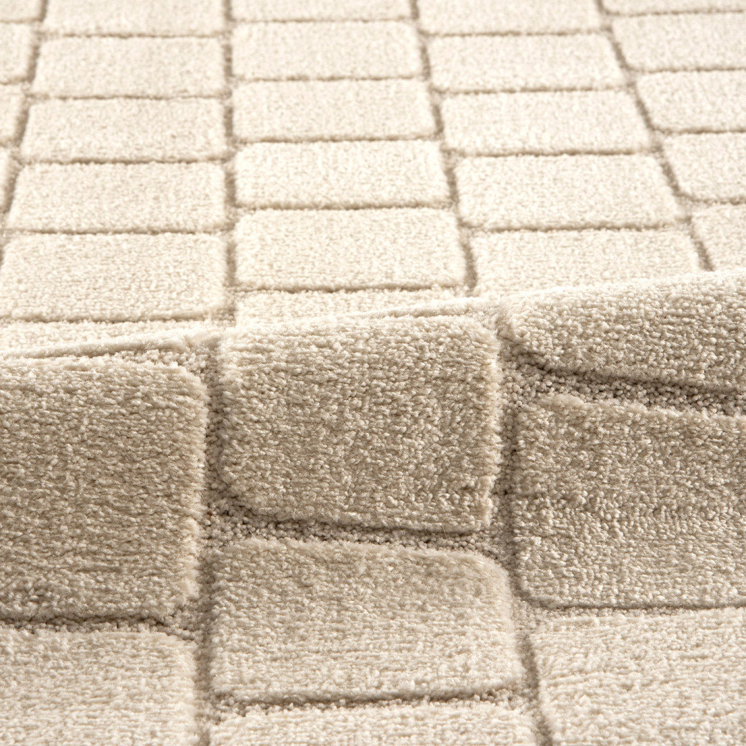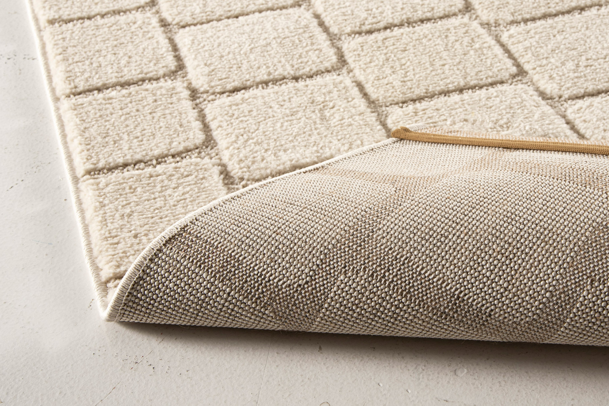 Valkoinen Arla-nukkamatto on tiivis ja pehmeäntuntuinen. Valkoinen väri yhdistetynä moderniin kaksitasoisen pehmeään kuvioon tuo hillittyä elävyyttä olohuoneeseen tai muuhun kodin tilaan. Matalanukkaisena se on helppohoitoinen ja sähköistymätön.