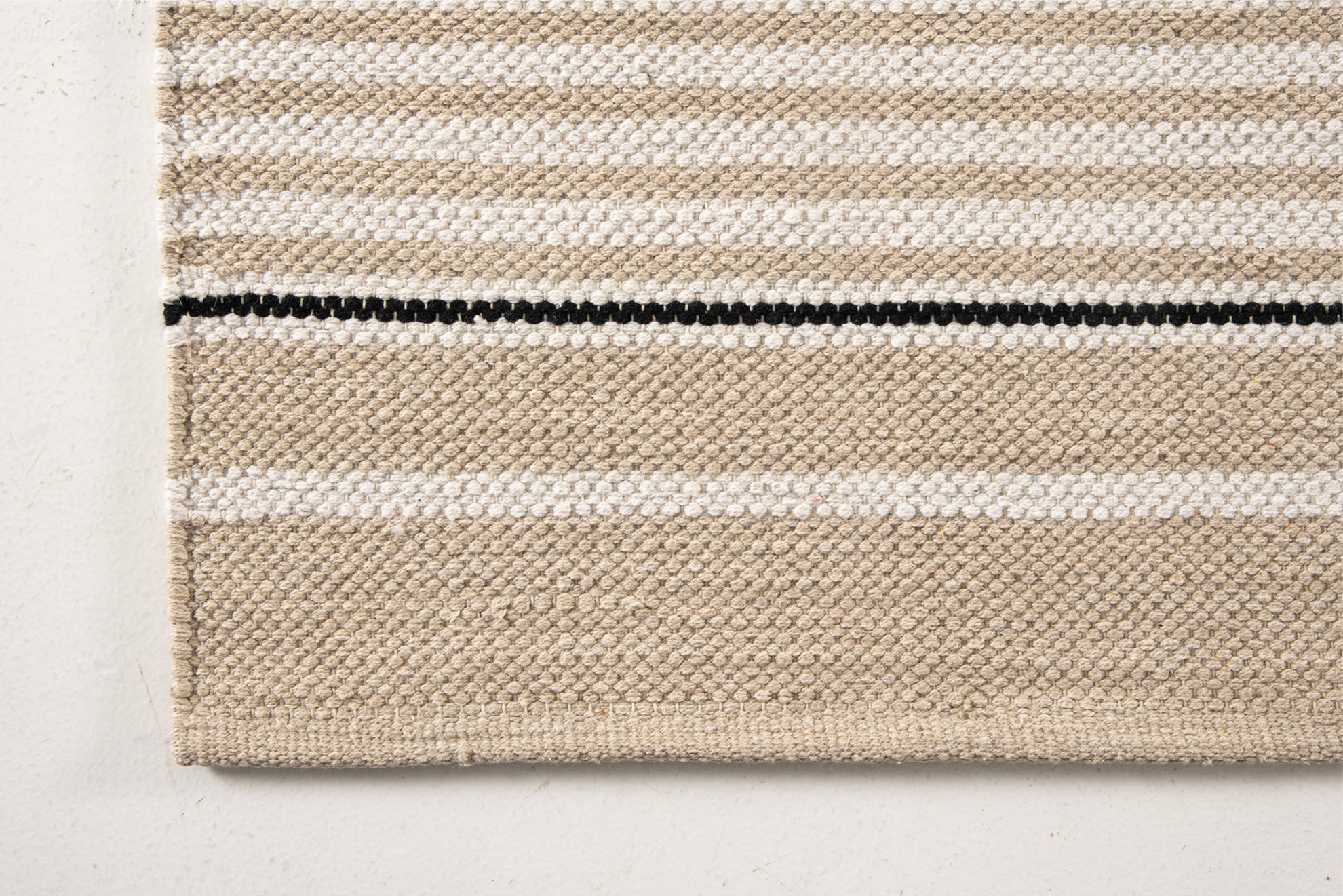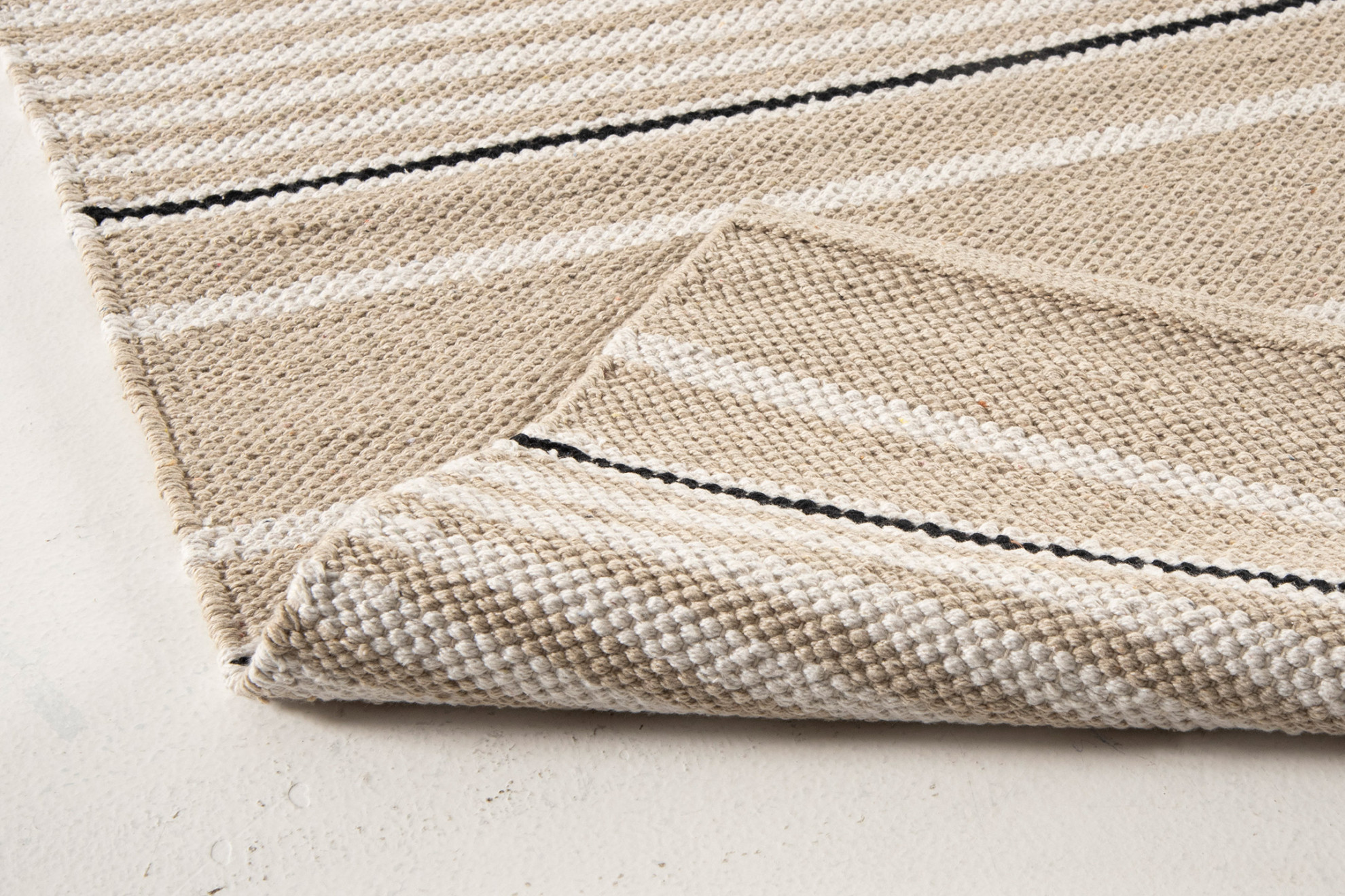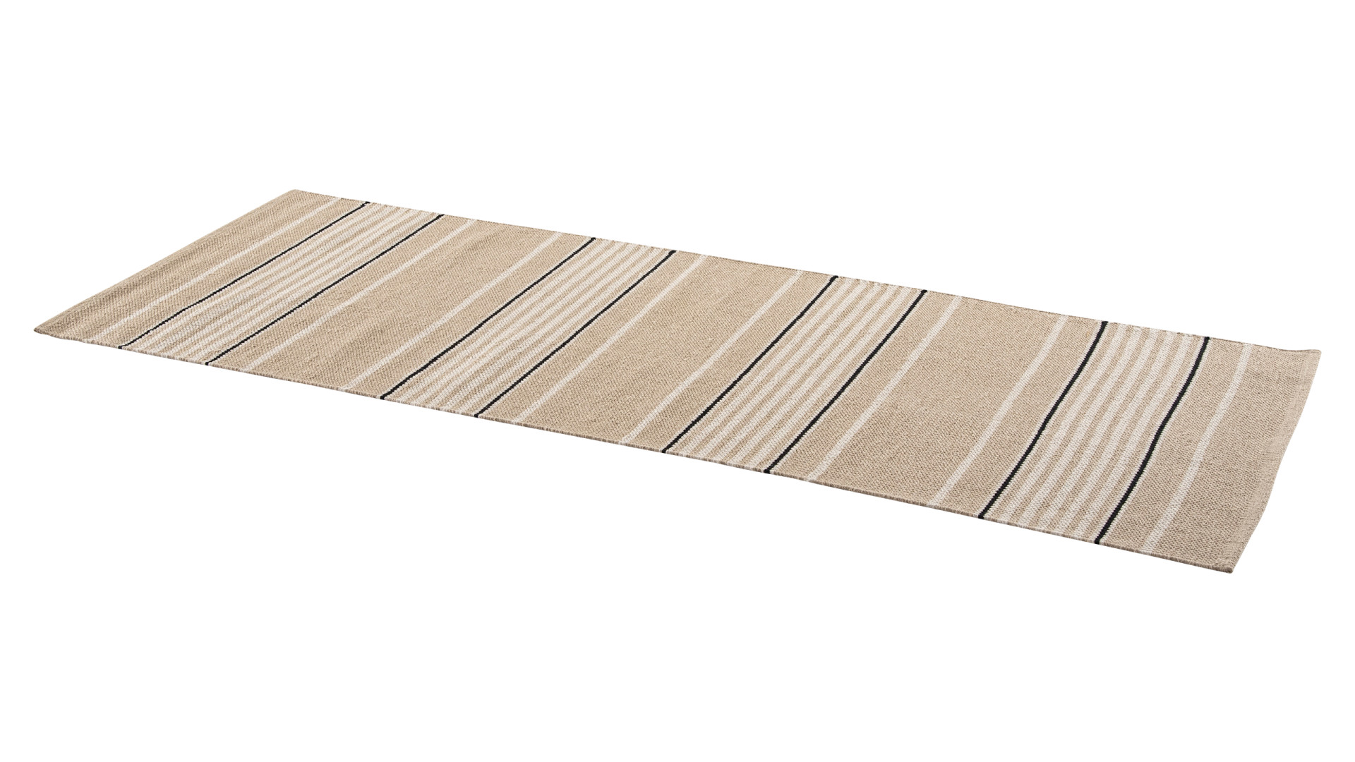 Beigessä Tuovi-puuvillamatossa on raikas raitakuosi.