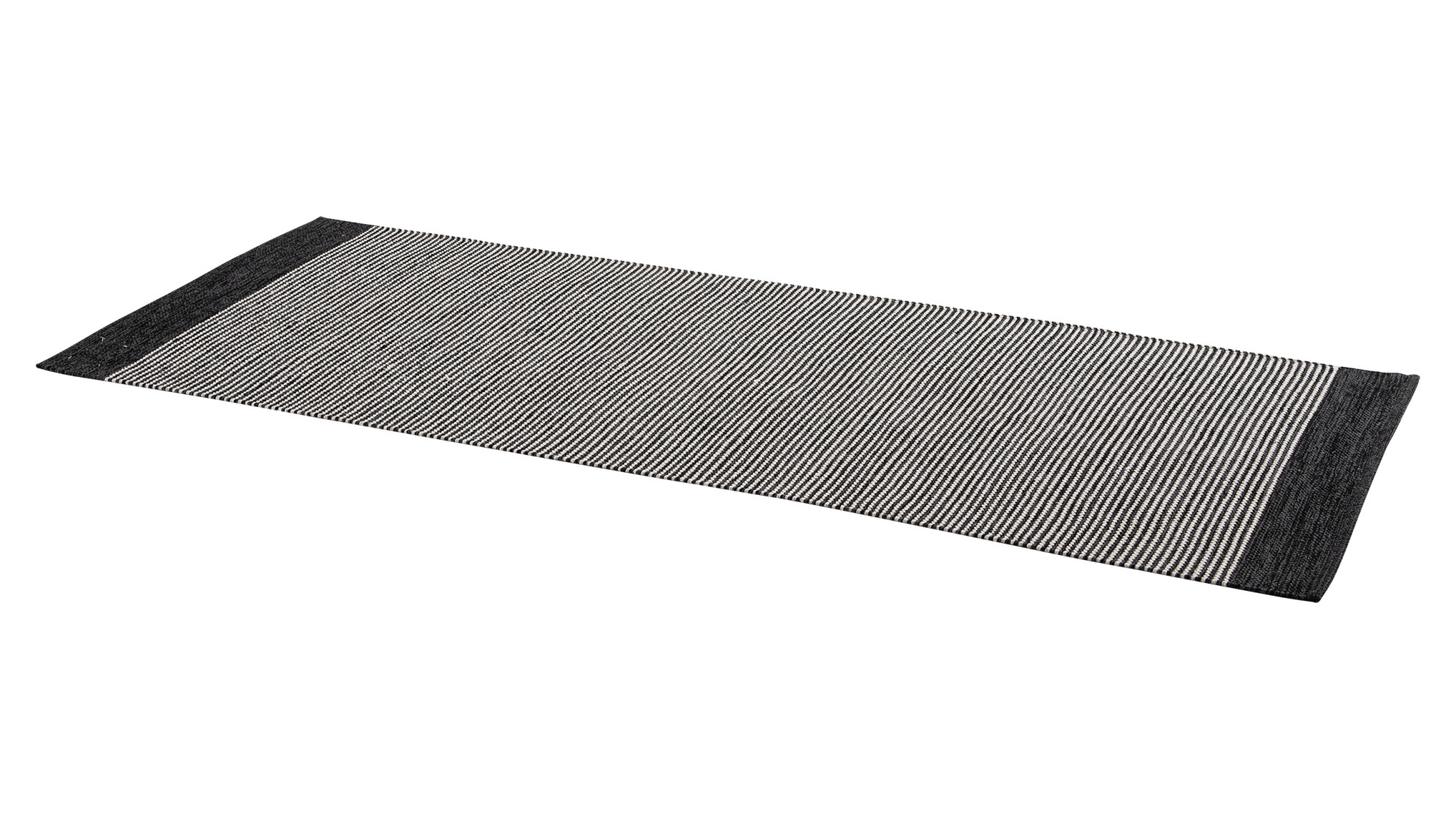Musta-valkoinen Pinja-puuvillamatto on raikkaan raidallinen - 100% puuvillalankaa.