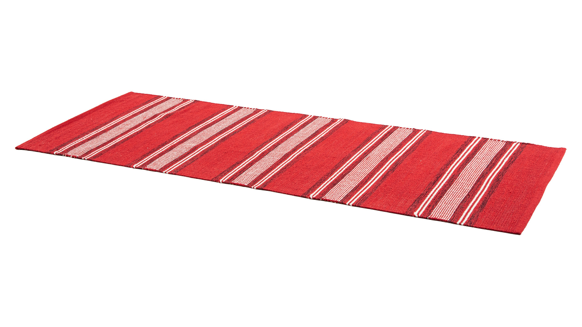 Puna-valkoinen raidallinen Sonja-puuvillamatto on yksinkertaisen kaunis ja perinteikäs designiltaan. Se tuo väriä ja eloa sisustukseen samalla kun se on pehmeä jalalle. Puuvillamatot ovat usein helppoja puhdistaa ja kestävät hyvin käyttöä. Voit yhdistää raidallisen maton monenlaisten huonekalujen ja sisustustyylien kanssa, ja se sopii hyvin niin olohuoneeseen, makuuhuoneeseen kuin keittiöönkin.