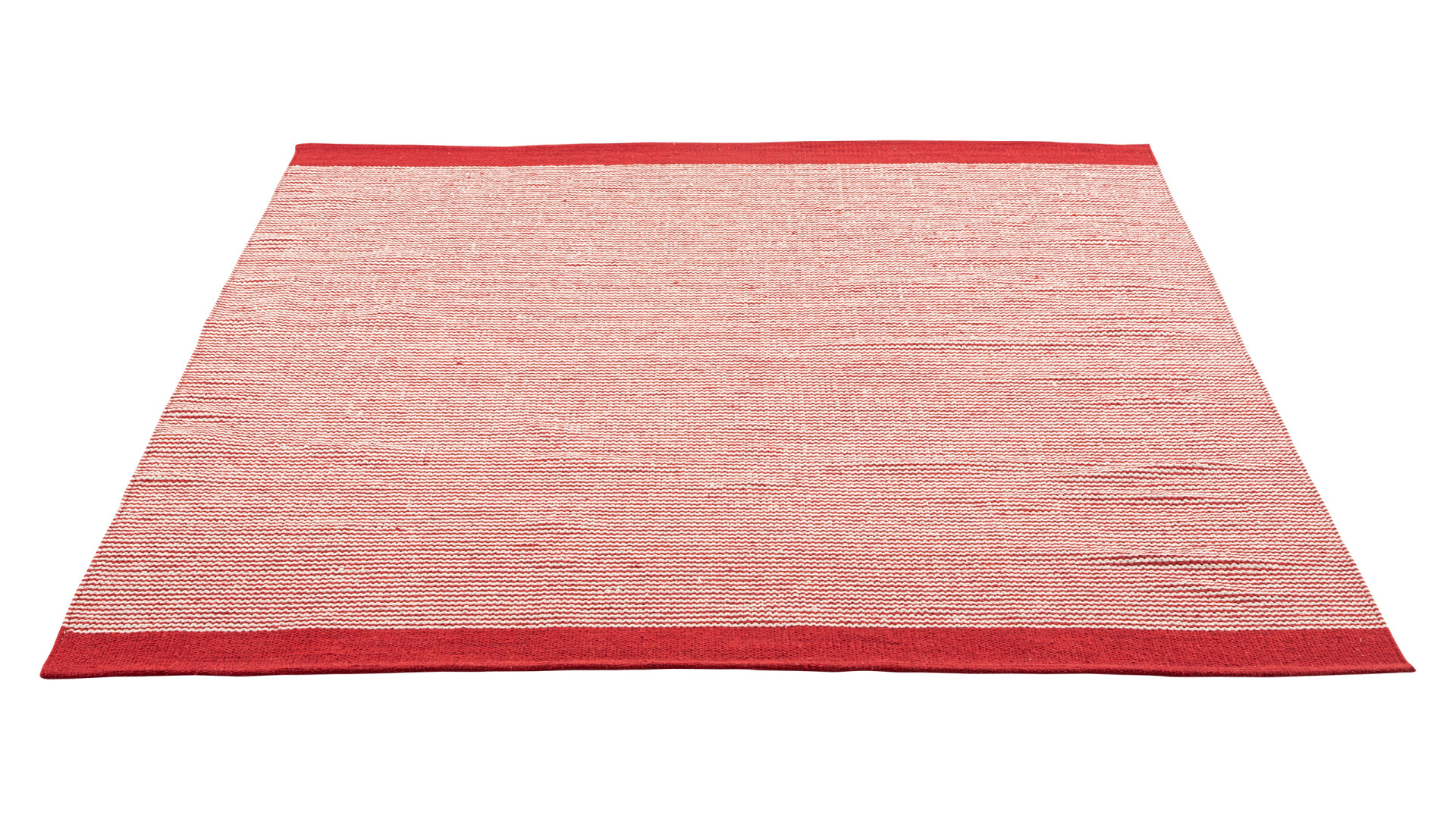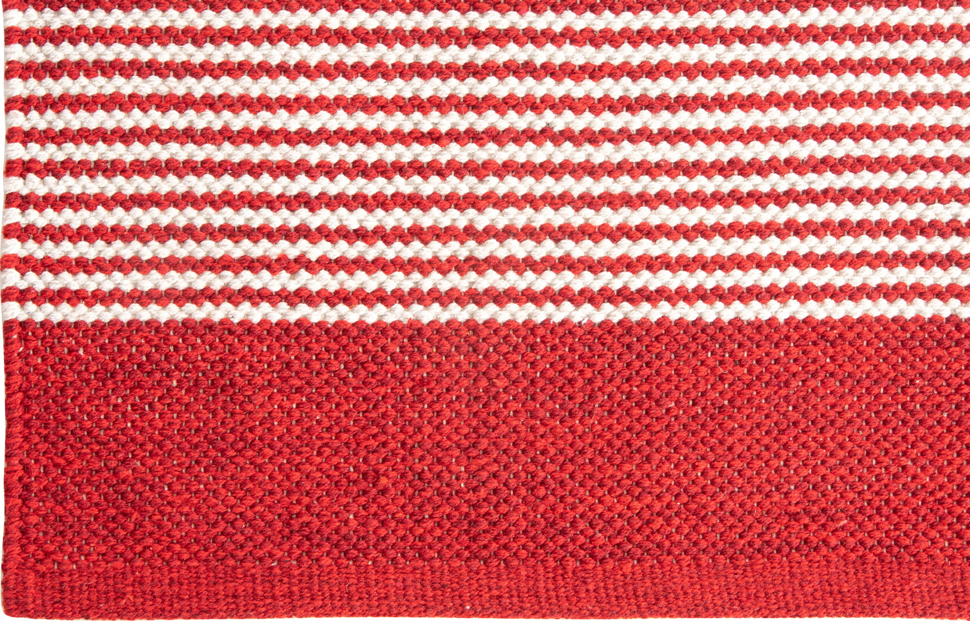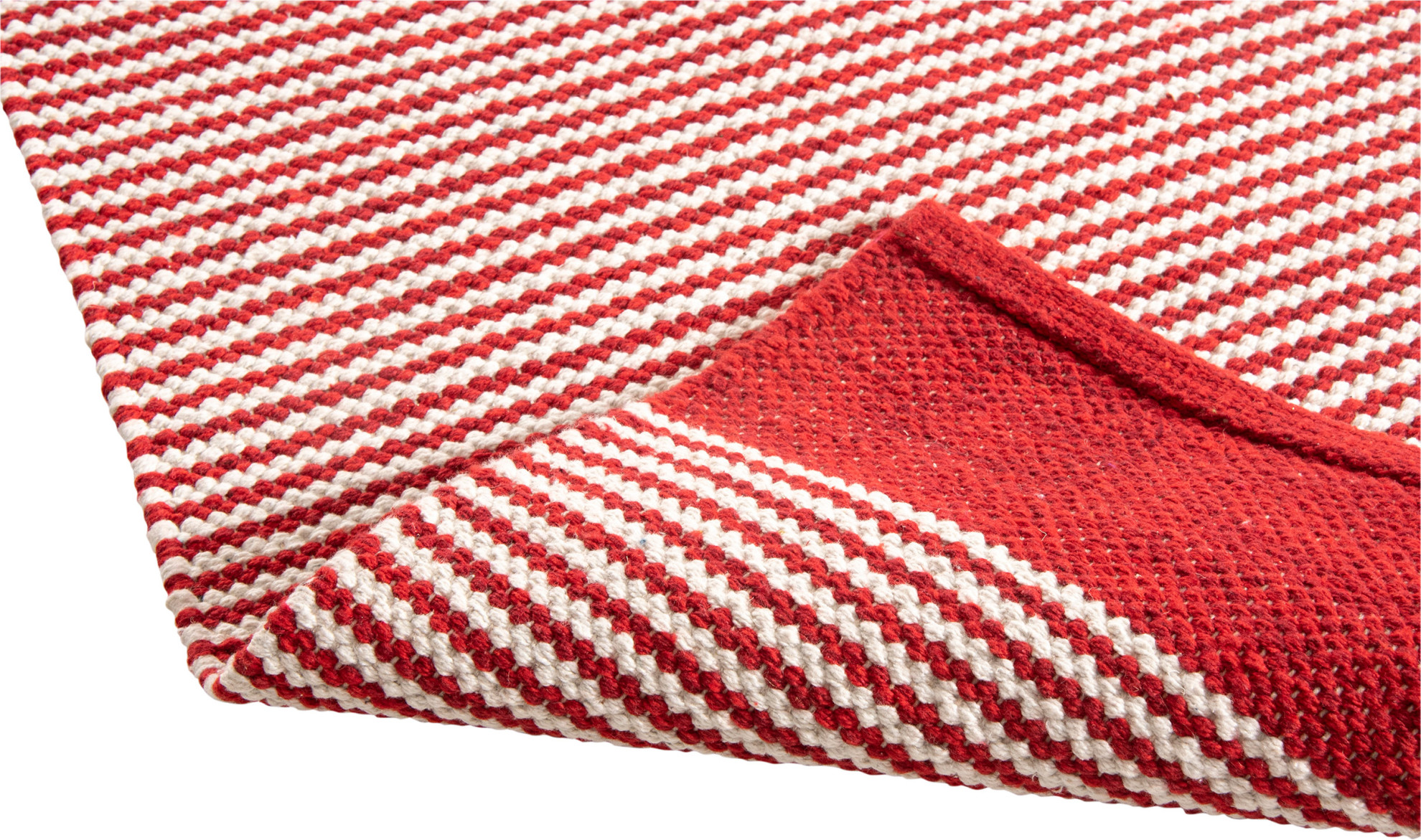 Puna-valkoinen Pinja-puuvillamatto on pirteän raidallinen - 100% puuvillalankaa.