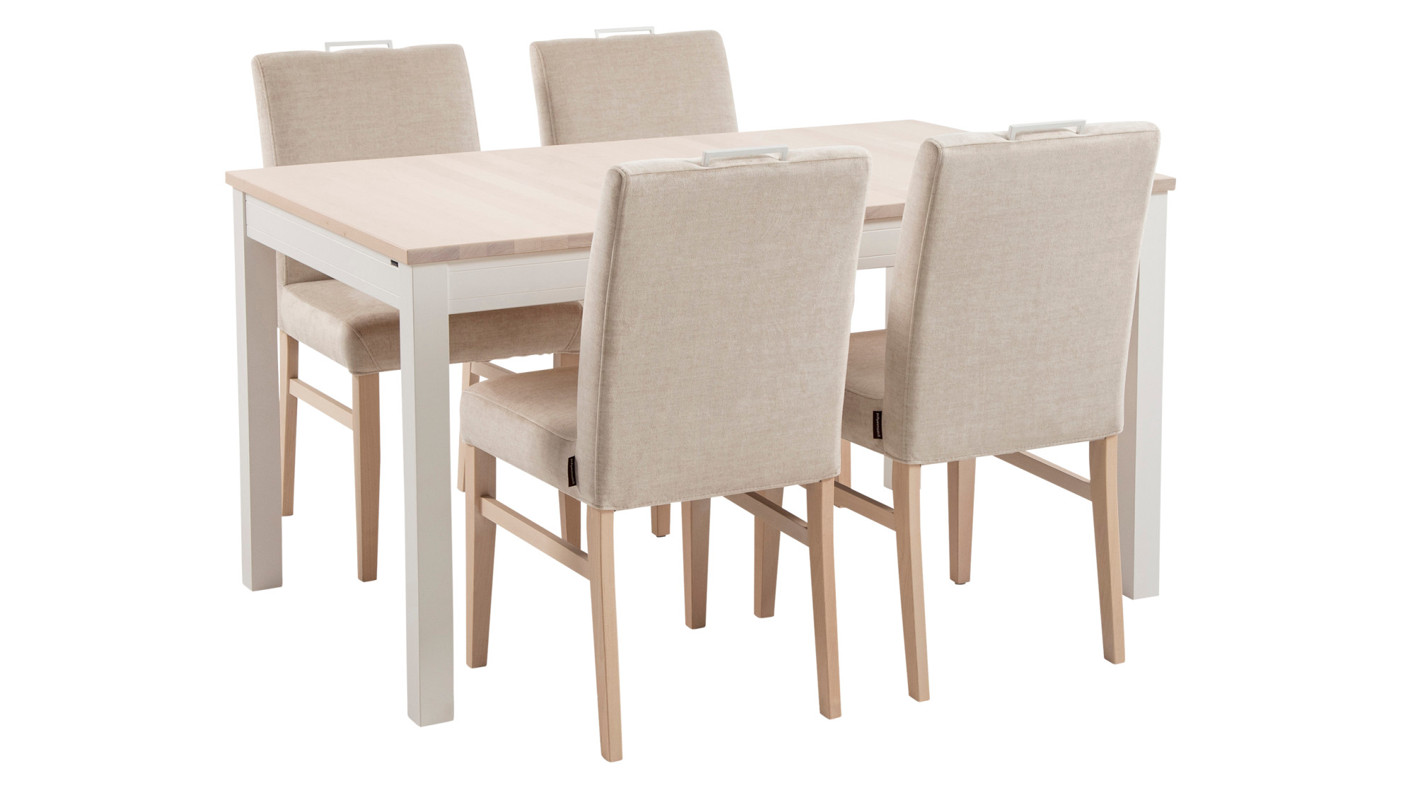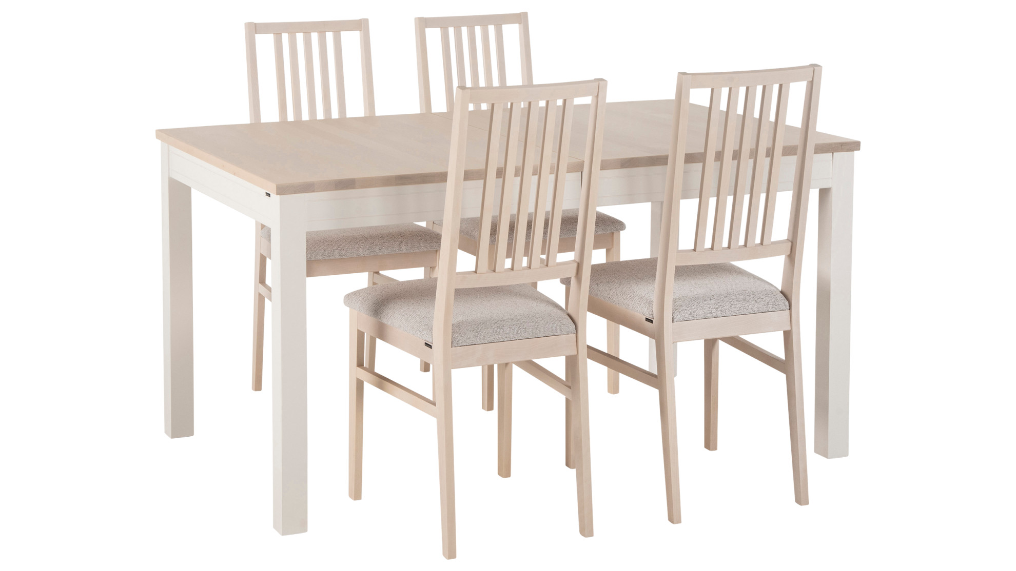 Jatkopalalla varustettu ruokapöytä on kätevä ratkaisu silloin, kun ruokailijoiden määrä pöydän ääressä vaihtelee. Mona-pöytä palvelee neljää ruokailijaa, mutta jatkettuna sen äärelle mahtuu kuusi ruokatuolia. Saman sarjan ruokatuolit istuvat kauniisti pöydän ympärille, mutta voit valita myös mitkä tahansa muut Pohjanmaan tuolit pöydän ympärille.