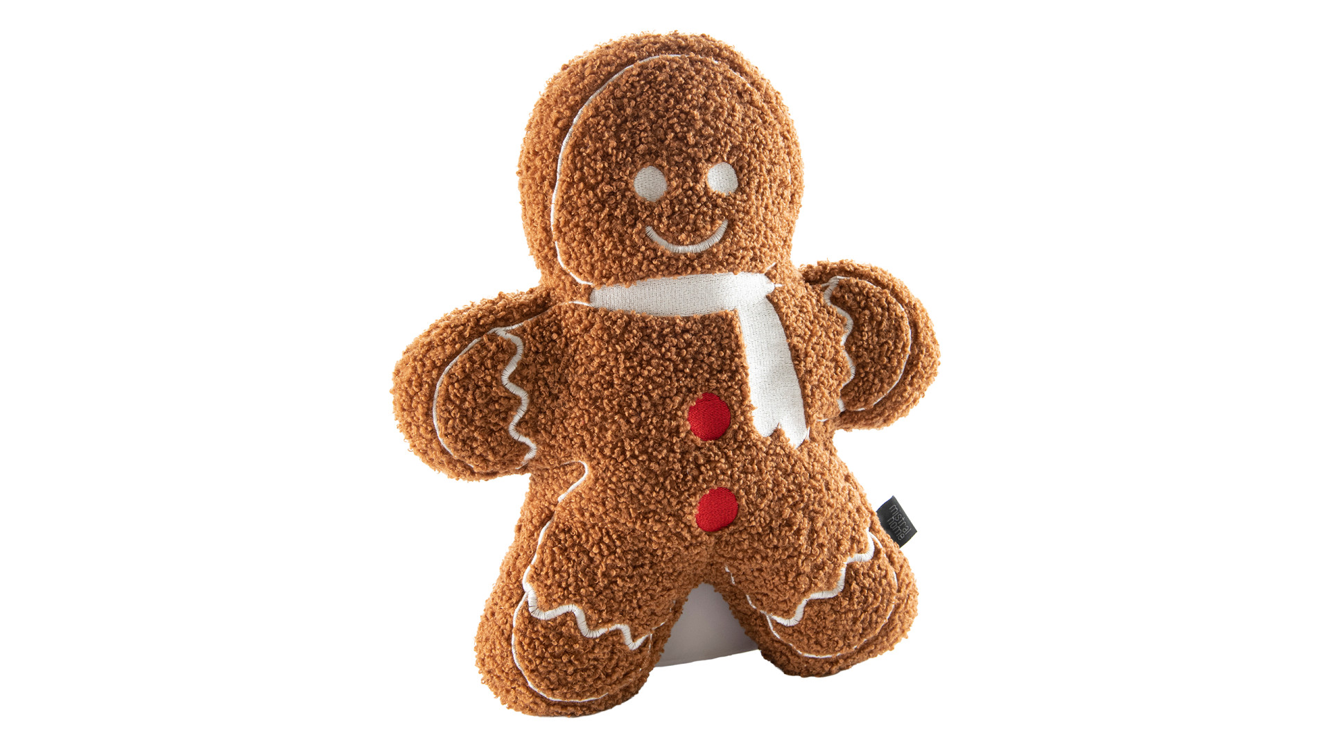 Jouluinen Piparin muotoinen tyyny teddykarvasta on pehmeä ja mukava. Kirjailtu etupuoli tuo siihen lisäilmettä ja joulutunnelmaa. Yksivärinen takapuoli tekee siitä helpon yhdistää muihin koristeisiin.