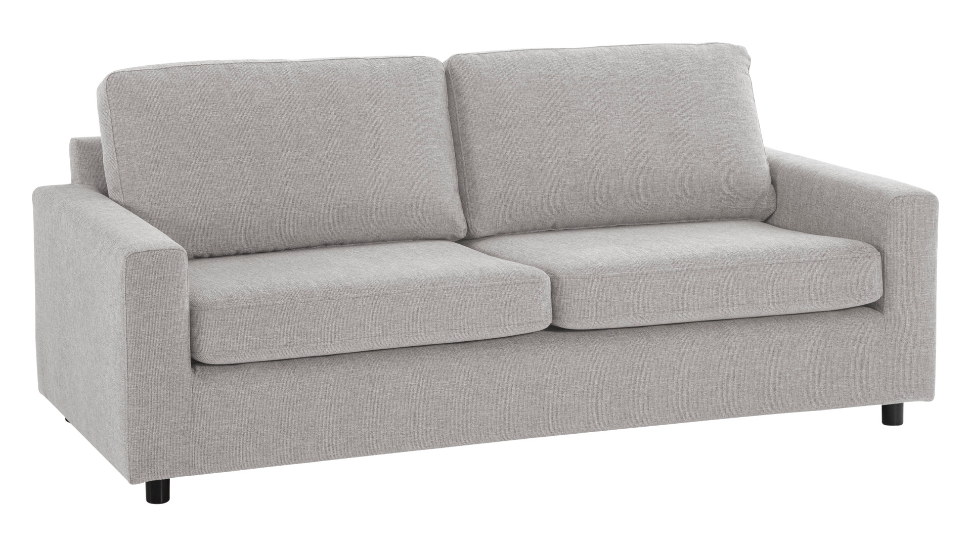 Sohvassa on käännettävät selkätyynyt ja kauniit, mustat puujalat.