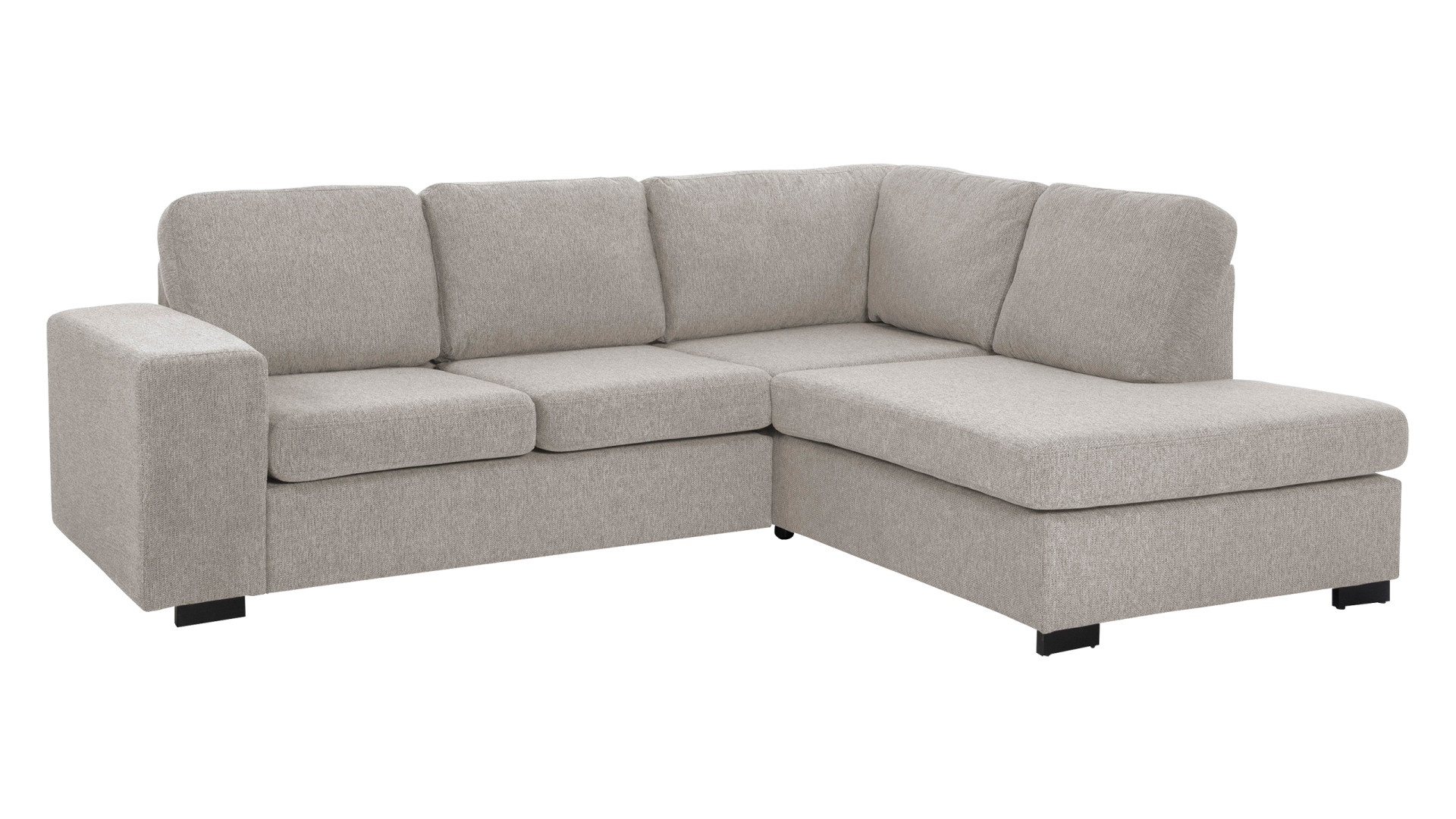 Kompaktin kokoinen kulmasohva avopäädyllä. Voit valita avopäätyosan joko oikealle tai vasemmalle puolelle.