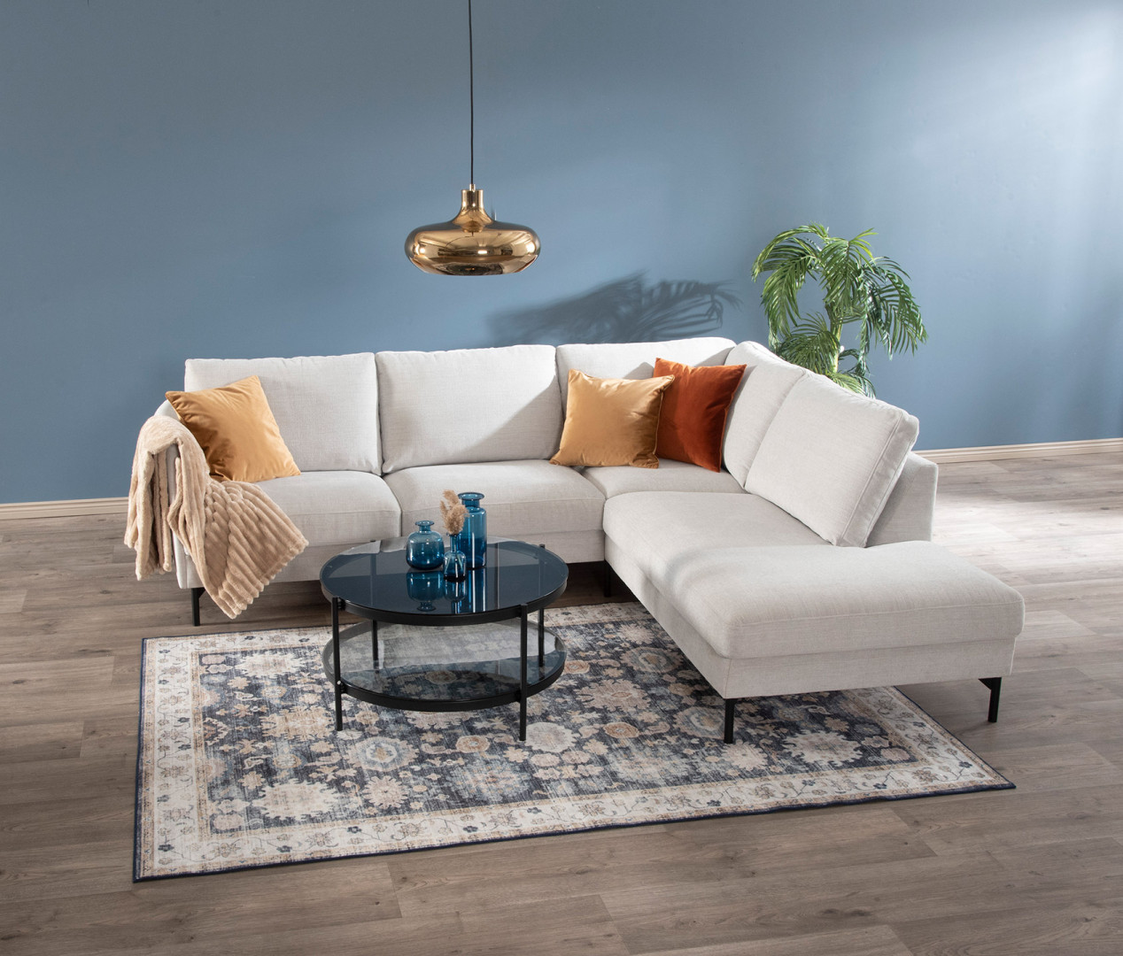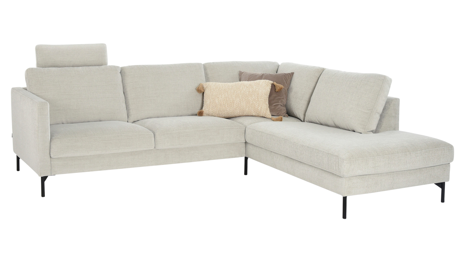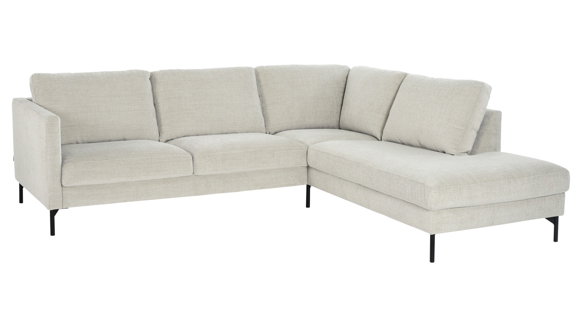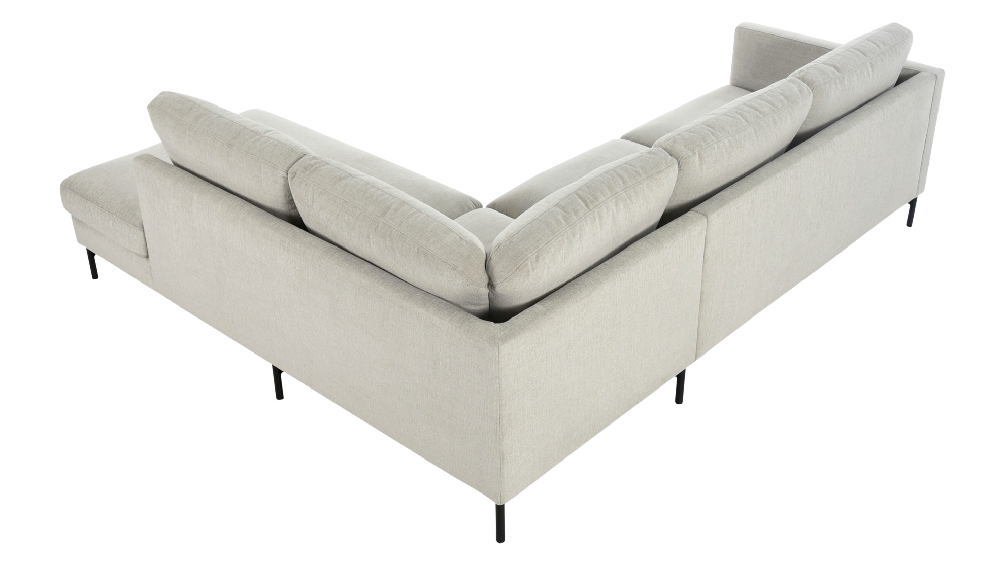 Kuvan Maison-kulmasohva on verhoiltu Marble-kankaan sävyllä silver birch ja siinä on 15 cm korkeat mustat metallijalat.