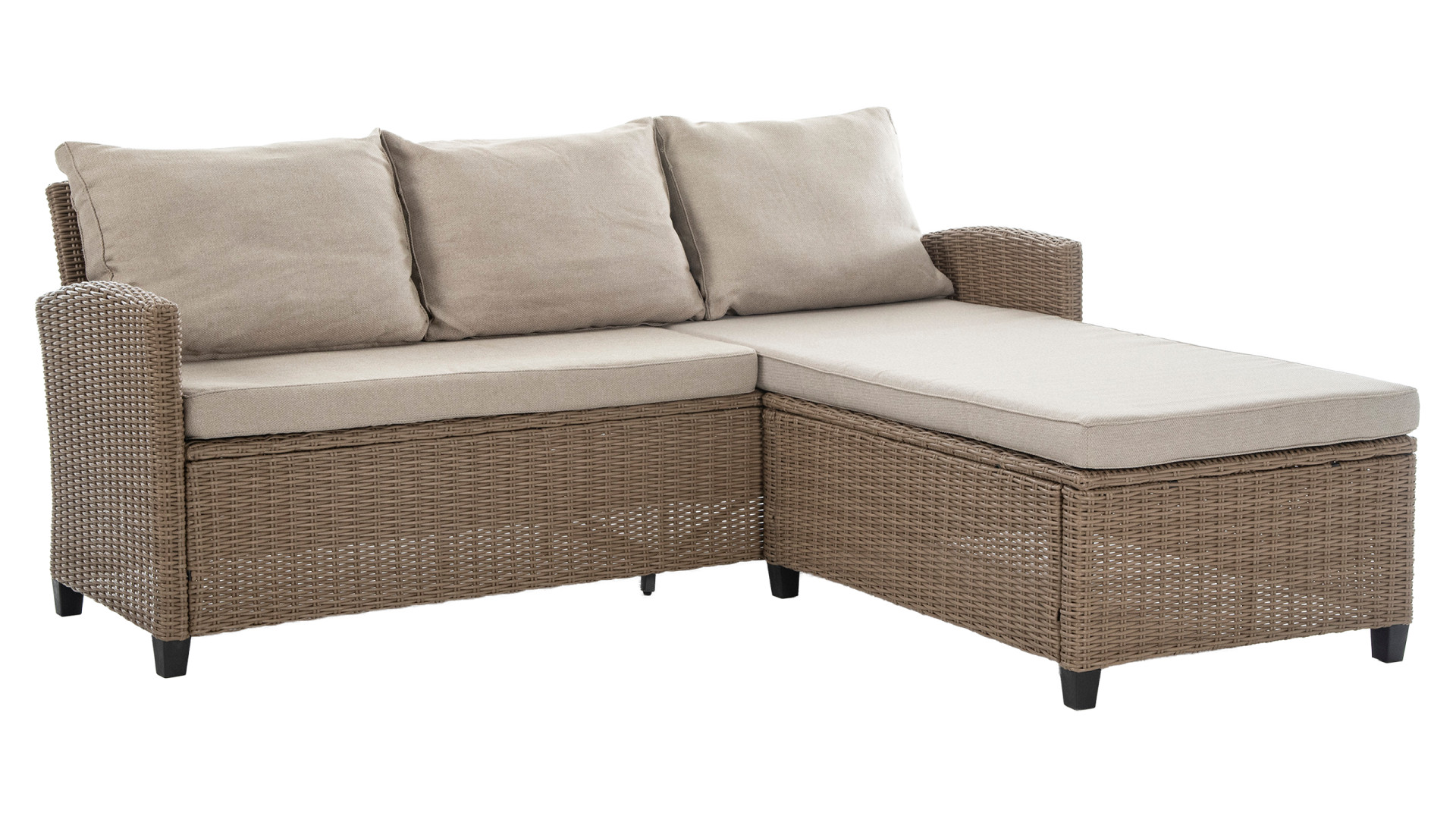 Säänkestävät ja tyylikkäät puutarhakalusteet ovat tärkeä investointi kodin ulkotilaan - millainen terassisohva juuri teille sopisi? MARINELLA-divaanisohva tuo ripauksen rentoa eleganssia ja viihtyisyyttä ulkotilaasi - ulkosohva, joka soveltuu monenlaiseen tilaan. Tämän divaanisohvan ajattoman luonnollinen rottinkipunos ja pehmeän neutraalit pehmusteet tekevät siitä houkuttelevan valinnan, joka sopii täydellisesti parvekkeelle, terassille tai puutarhaan.