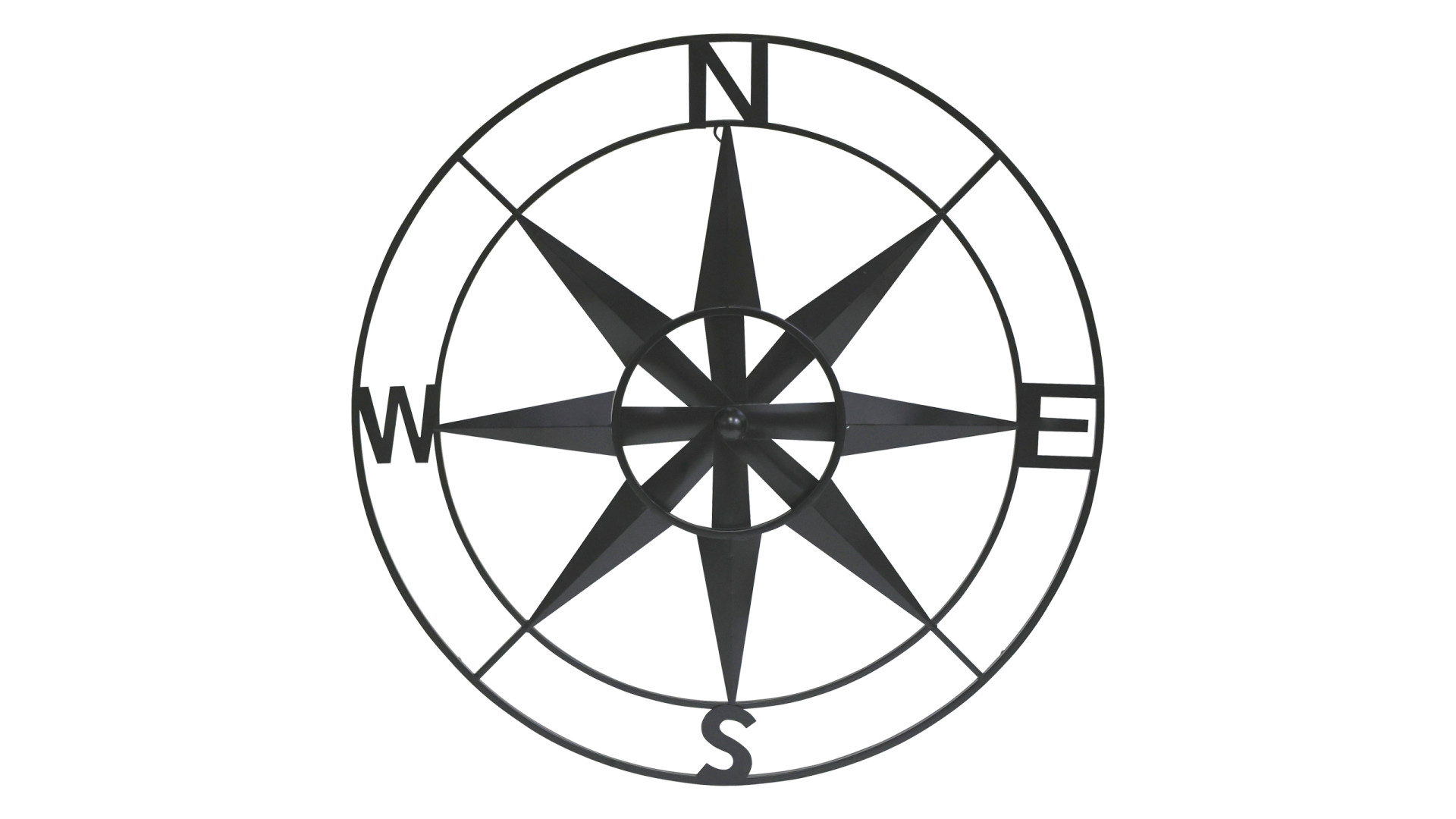 Musta Compass-seinäkoriste, muistuttaa kompassia, voisi olla hieno lisä mihin tahansa tilaan. Tyylikkäs sisustuselementti.
