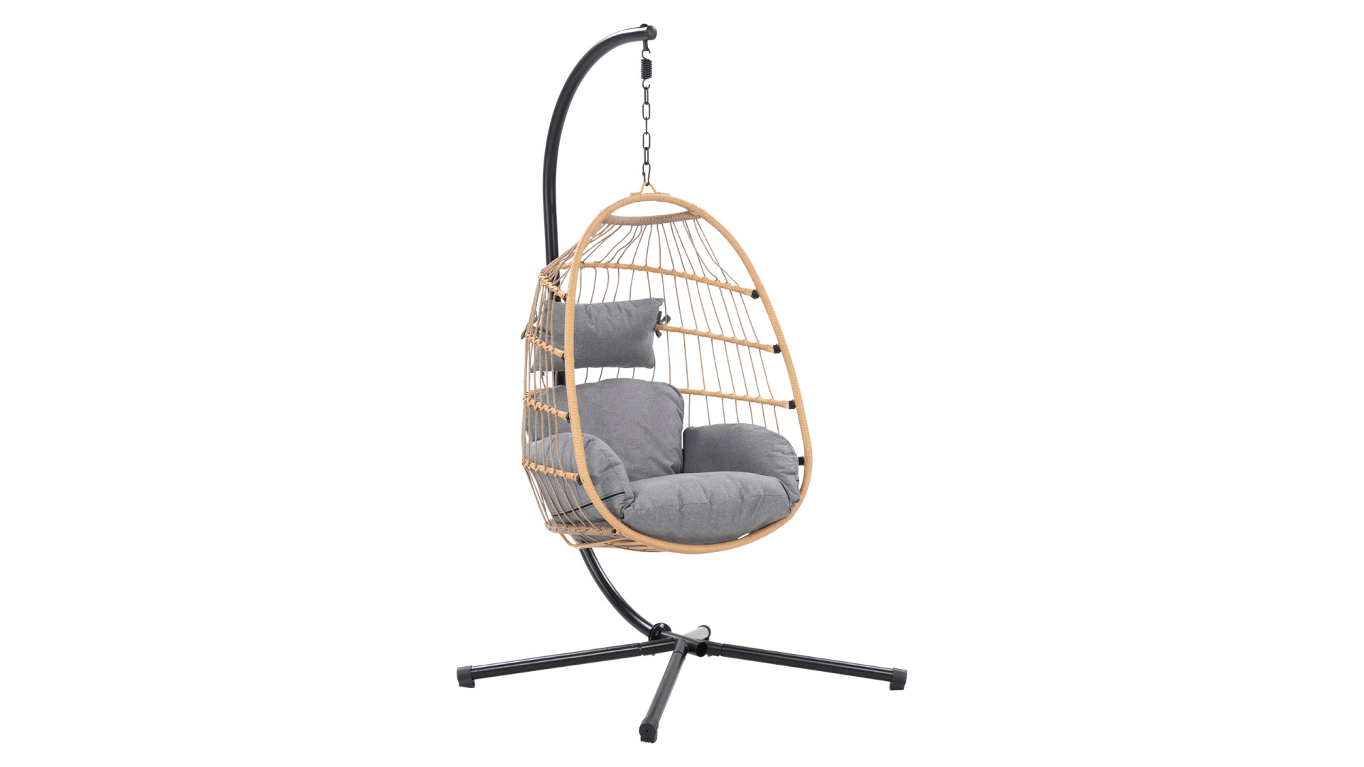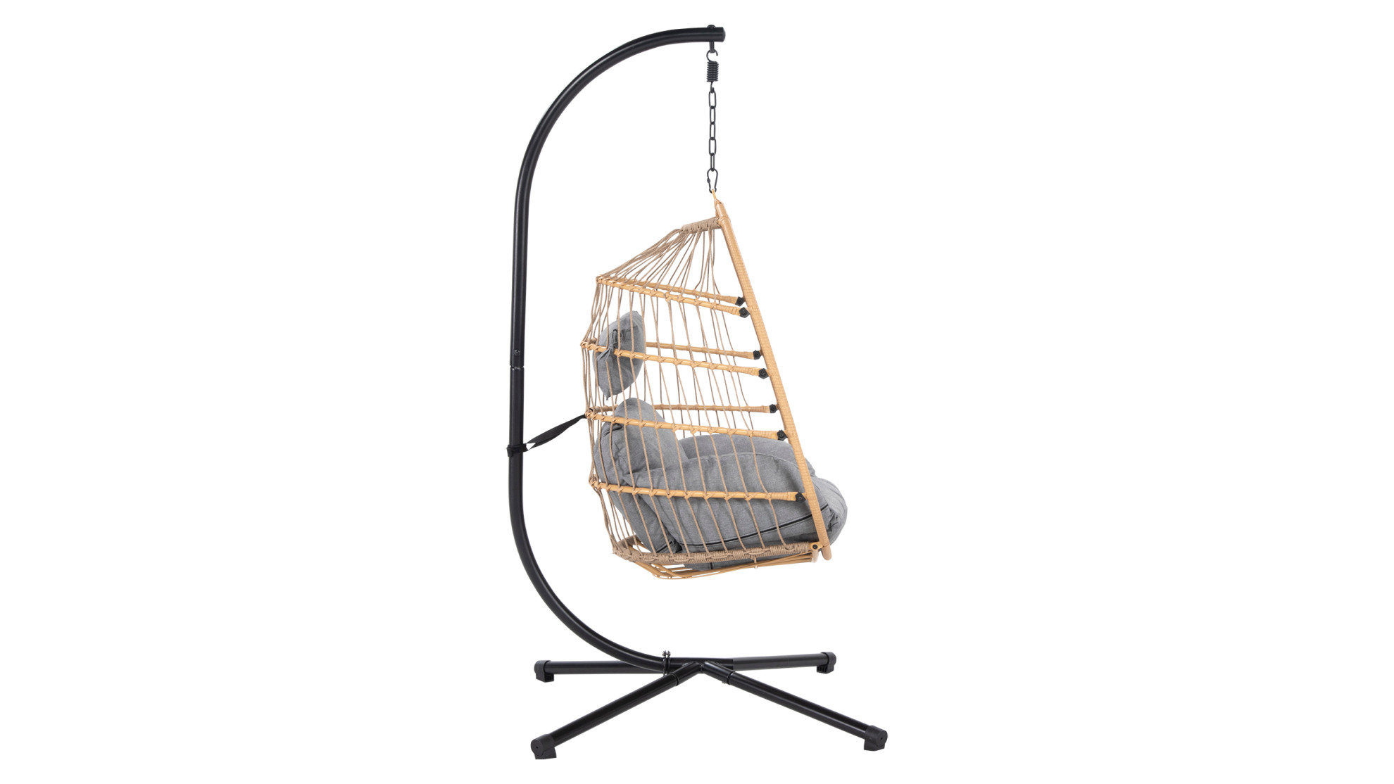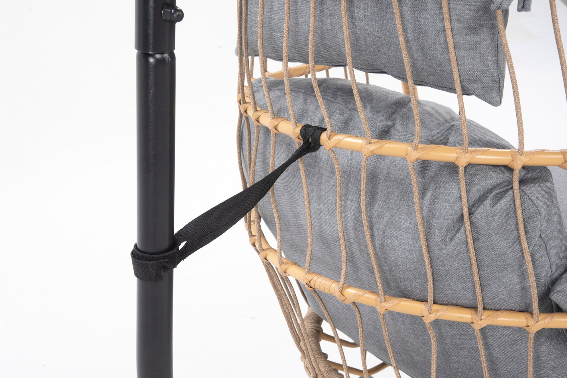 CARINI-riipputuoli yhdistää modernin estetiikan ja kestävät materiaalit, jotka kestävät säätä ja aikaa. Tukeva teräsrunko ja säänkestävä polyrottinki varmistavat, että tuoli säilyy kauniina kelistä riippumatta. Tuolin pehmeät polyesteripehmusteet tarjoavat ensiluokkaista mukavuutta, jolloin voit nauttia pidemmistäkin lepohetkistä ilman kompromisseja.