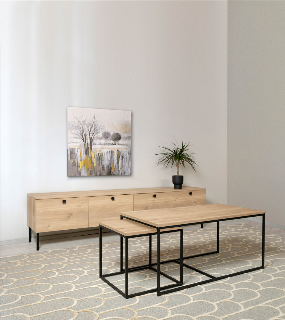 Nerokas Ratkaisu: Voit luoda tyylikkään ja tilansäästeliään sarjapöydän sijoittamalla ison pöydän alle 1–2 pienempää pöytää. Vedä pienempi esiin, kun tarvitset lisätilaa kahville tai läppärille – kaksinkertainen hyöty, yksi tyyli.