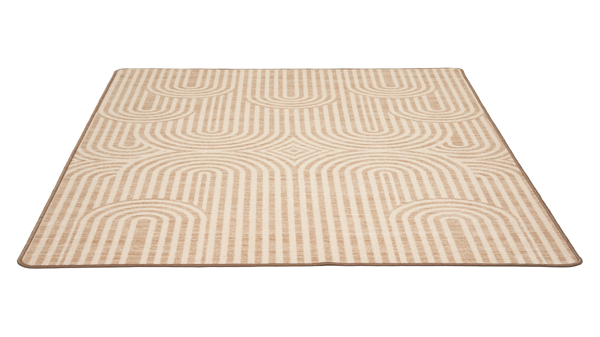 Beigen värinen MICO-matto on tyylikäs bukleepintainen matto, jossa moderni kaarikuvio tuo sisustukseen trendikästä ilmettä.