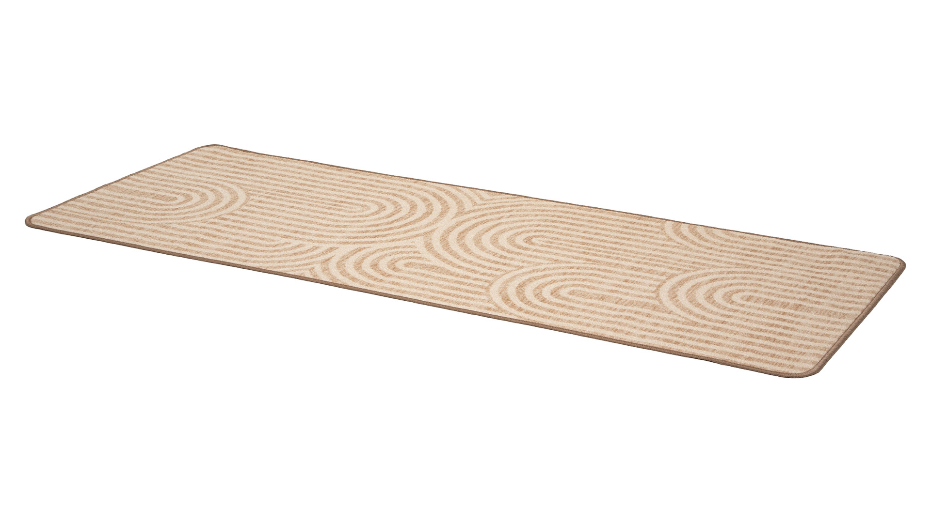 Beigen värinen MICO-matto on tyylikäs bukleepintainen matto, jossa moderni kaarikuvio tuo sisustukseen trendikästä ilmettä.