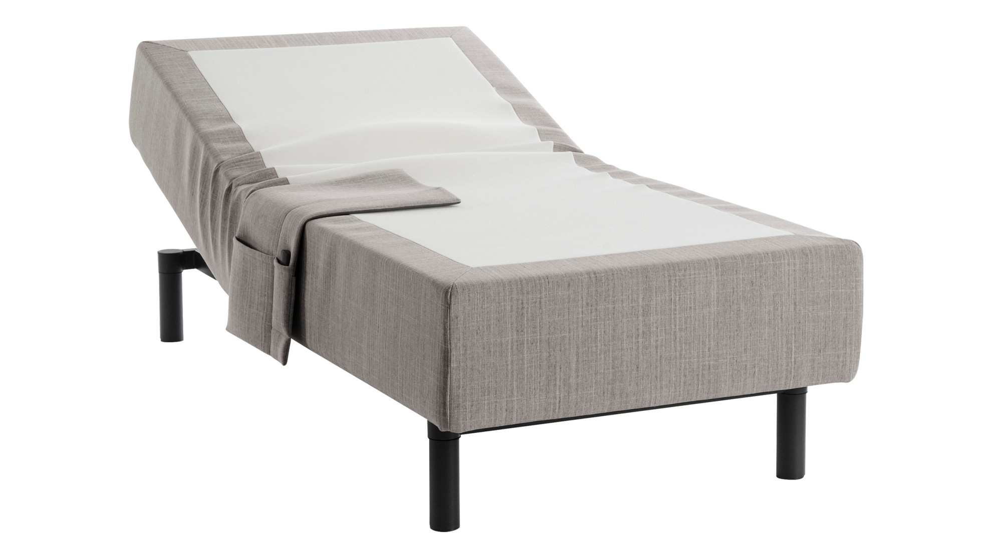 Sänky sisältää tarviketaskun, langattoman kaukosäätimen sekä ajattoman tyylikkäät ja tukevat metallijalat.