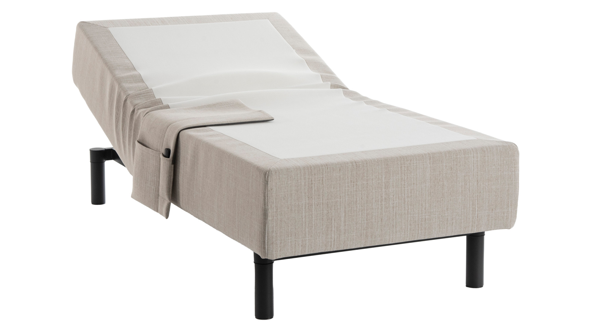 Sänky sisältää tarviketaskun, langattoman kaukosäätimen sekä ajattoman tyylikkäät ja tukevat metallijalat.