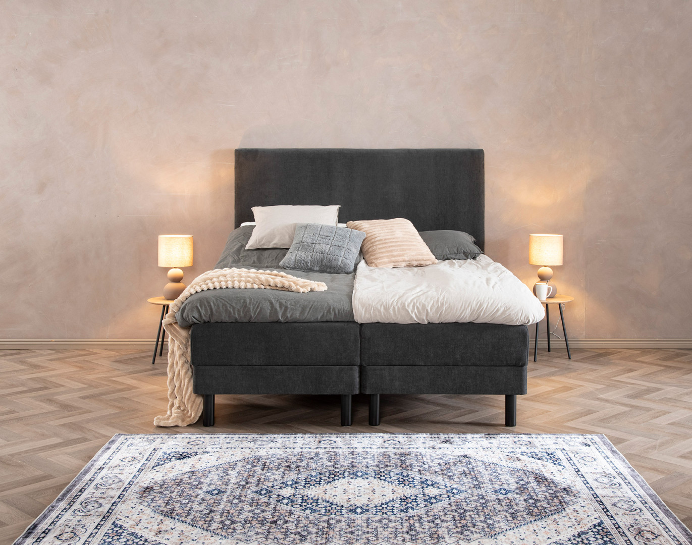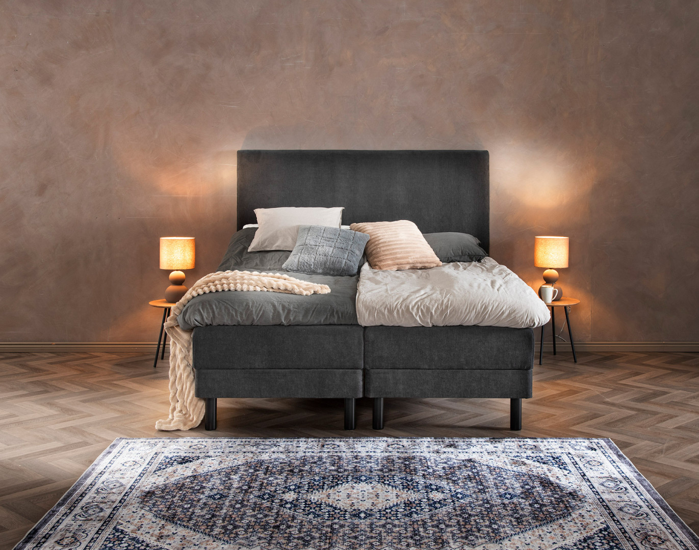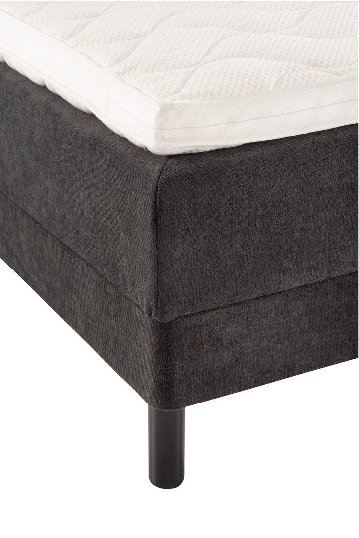 Sängyn musta kangasverhoilu antaa sille modernin ja ylellisen ilmeen, joka sopii kaikenlaisiin makuuhuoneisiin. Minimalistinen muotoilu yhdistettynä tukeviin jalkoihin luo sängylle vaikuttavan ja ajattoman ilmeen, joka täydentää huoneesi sisustuksen.