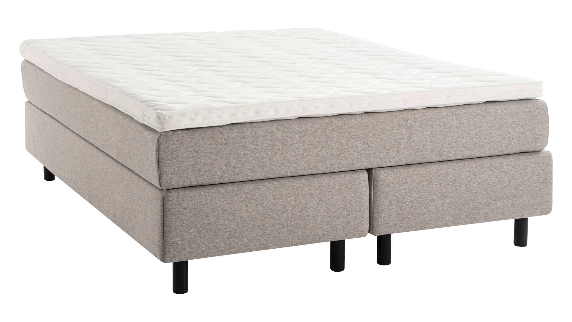 Korkea ja muhkea jenkkisänky on verhoiltu kauniilla hiekan värisellä huonekalukankaalla. Sängyssä on metalliset 14 cm jalat.