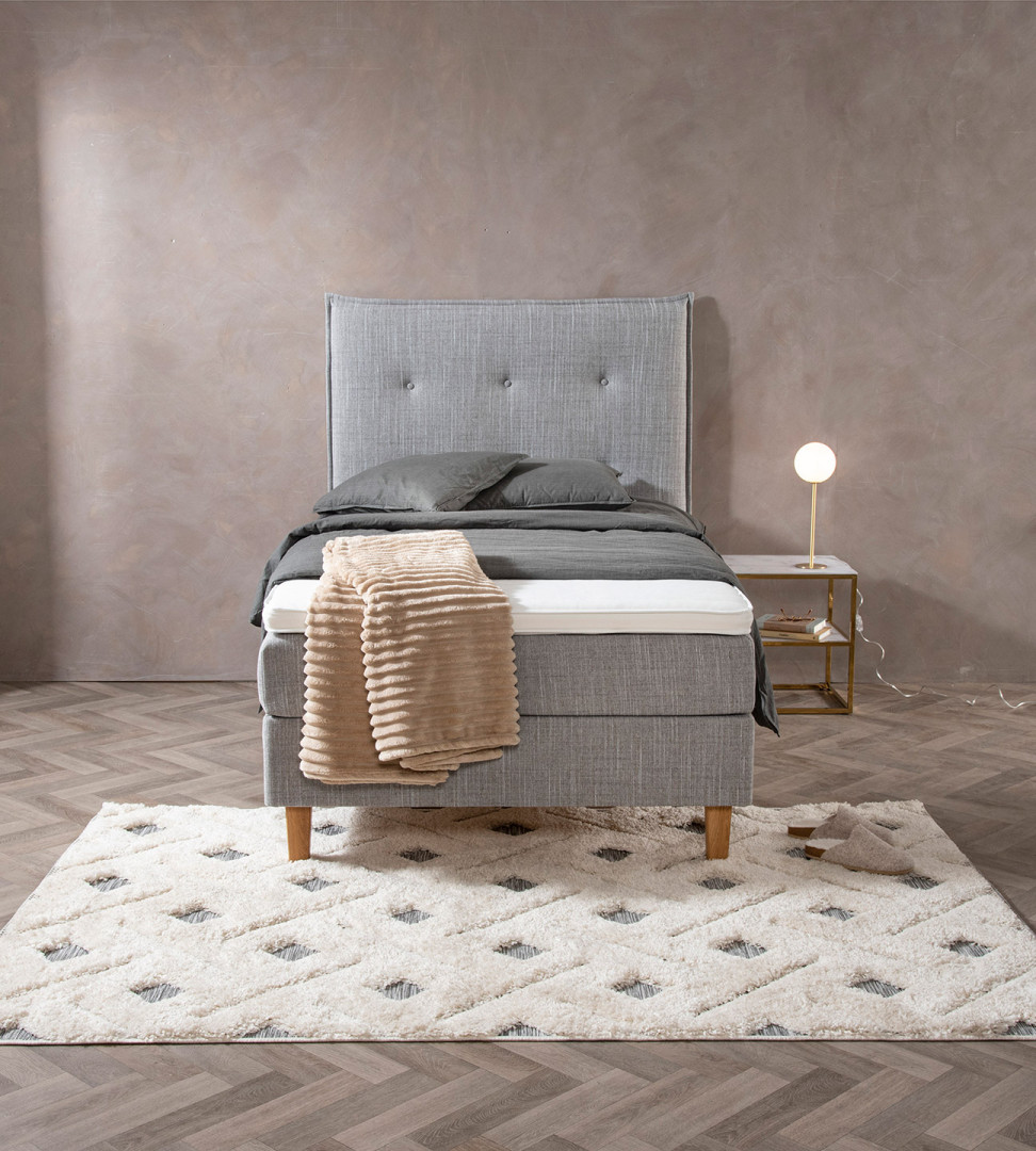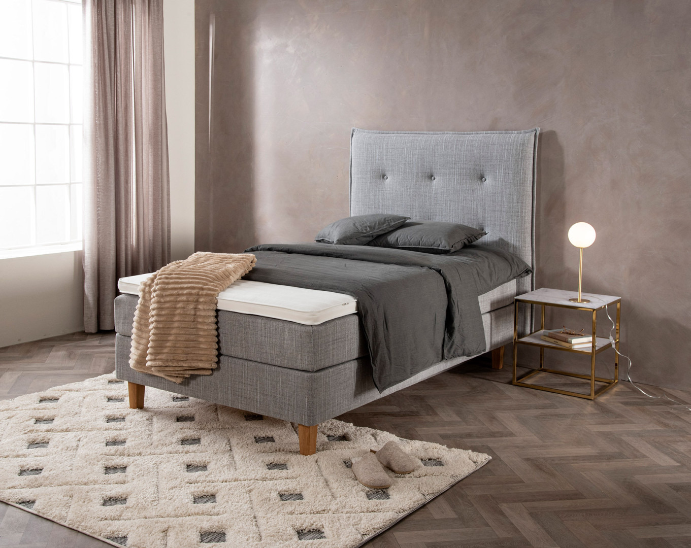 Claudia-jenkkisängyn verhoilu on kaunis vivahteikas harmaa tai beige verhoilukangas. Voit myös hankkia Claudia-sängynpäädyn, jolla viimeistelet makuuhuoneen sisustuksen. Sängynpääty myös suojaa seinää likaantumiselta ja itseäsi kolhiintumiselta. Katso Claudia-sängynpääty tästä.