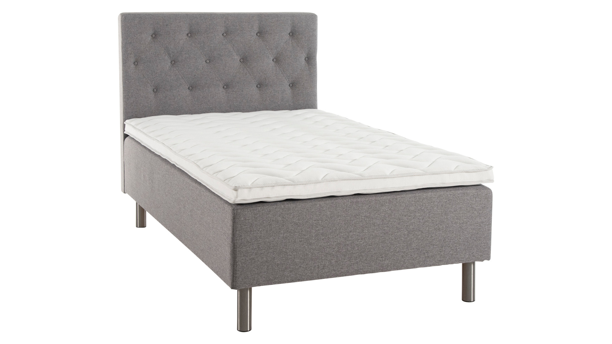 Hyvä runkopatja kestää aikaa. Donna-runkopatja 120 x 200 cm on yhden hengen sänky ja on ajattoman tyylikäs harmaassa verhoilussaan. Runkopatjassa olevat metallijalat antavat sängylle modernin ilmeen.