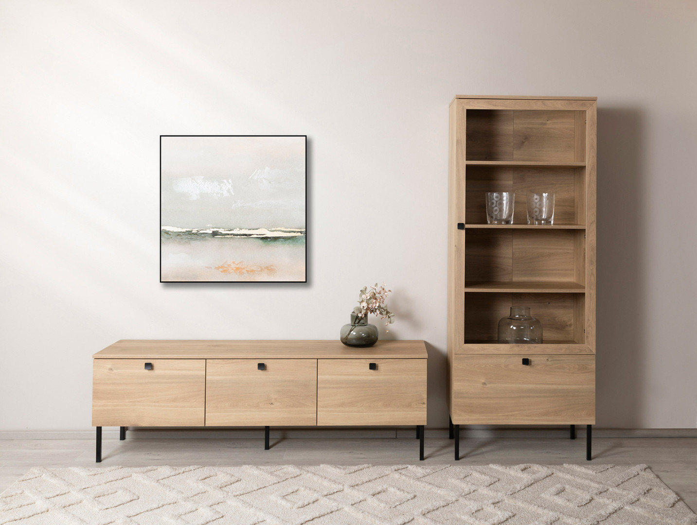 Sento-TV-tason skandinaavinen muotokieli ja selkeälinjainen ulkonäkö tekevät siitä ajattoman sisustuselementin. Luonnollinen tammi tuo lämpöä ja kodikkuutta, kun taas valkoinen väri tuo valoa ja raikkautta sisustukseen.